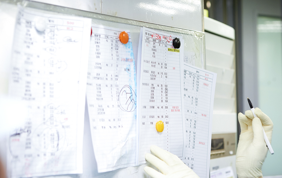 - 식자재 관리의 안전을 고려하여 대부분의 식자재는 아워홈, 삼성웰스토리, CJ, 한화 등 대기업을 통해 구매합니다.