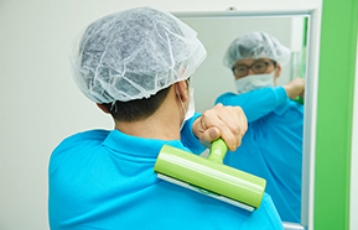 클린롤러를 이용하여 위생복 이물질을 제거합니다.