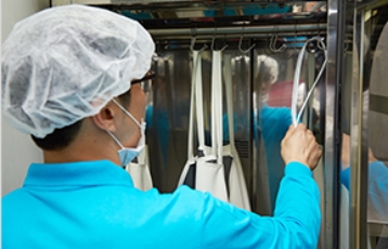 위생관리기준에 맞도록 각실에 규정된 앞치마를 선택합니다.