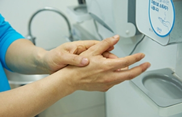 손 세정시 손바닥, 손등 및 손가락 사이를 액상비누로 20초 이상 실시한 후 흐르는 물에 깨끗하게 씻어냅니다.