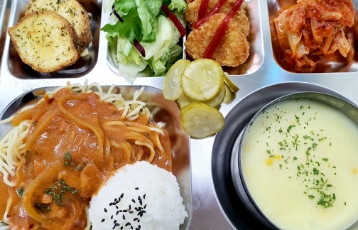 토마토스파게티, 수제햄버거, 옥수수스프